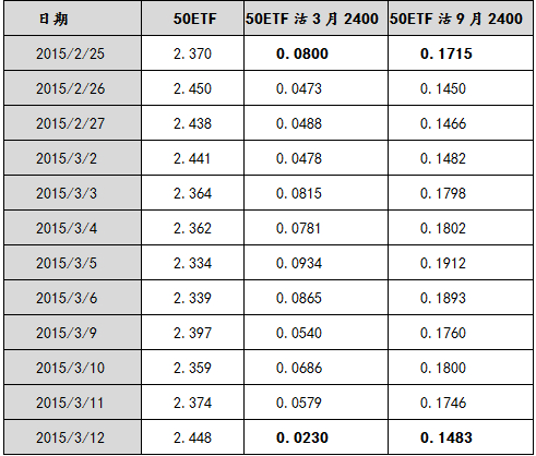 2015年2月25日至2015年3月12日的结算价数据如下表:
