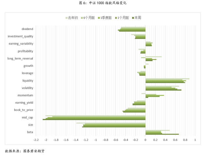 2021年以来沪深300指数在股利、规模因子方面的暴露进一步放大,非线性市值因子明显上升,长期反转在最近有所回升。而本周中证500和中证1000指数在非线性市值因子上的暴露也有所回升。本周各指数的因子暴露变动如下。