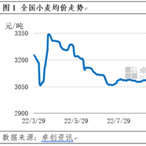 2022年新小麦上市后,价格呈高开高走态势,7-11月价格震荡上行,卓创资讯监测数据显示,截止到12月1日全国小麦均价涨至3248.64元/吨,较7月20日上涨188.64元/吨,涨幅6.16%。12月开始价格止涨下跌,连续下跌近4个月,创近一年新低。截止到2023年3月29日,全国小麦均价2952.73元/吨,较12月1日均价下跌9.11%,较前期低点(2022年4月8日3058.18元/吨)下跌3.45%。