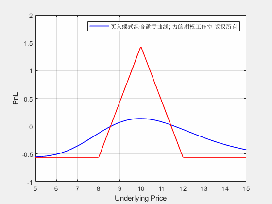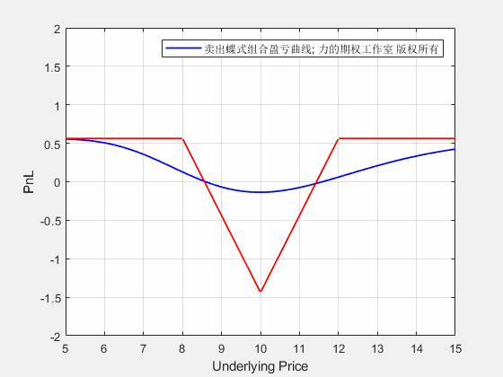 卖出蝶式组合从开仓到到期的损益动态图