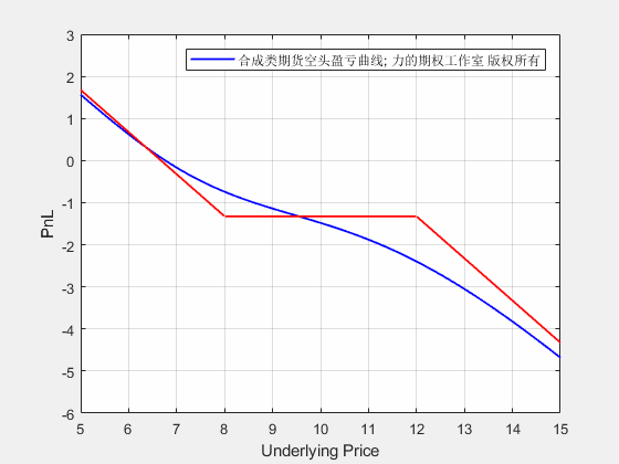 合成类期货空头期权从开仓到到期的损益动态图