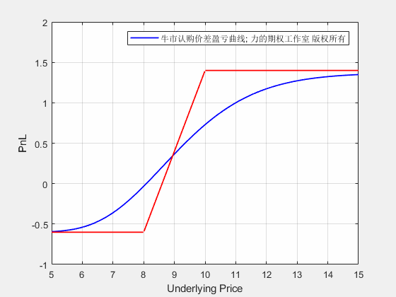 牛市价差期权从开仓到到期的损益动态图