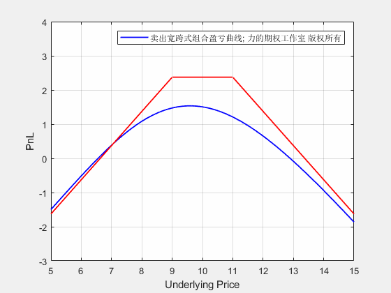 卖出宽跨式期权从开仓到到期的损益动态图