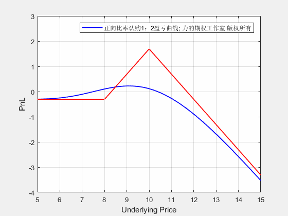 反向比率认购1:2期权从开仓到到期的损益动态图