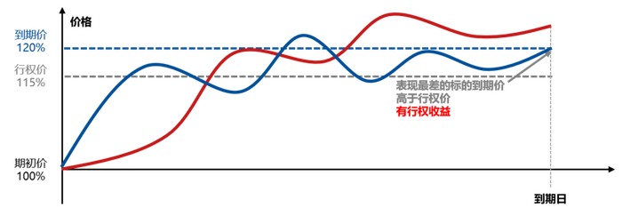 表现最差的标的到期价高于行权价