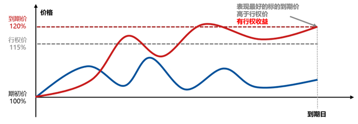 表现最好的标的到期价高于行权价