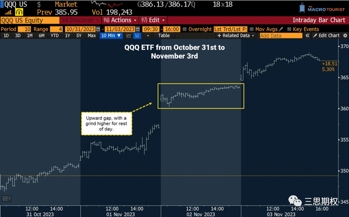 11月2日的ETF出现跳涨,部分和经济数据走强有关,相当于纳指100在14,600左右开盘。