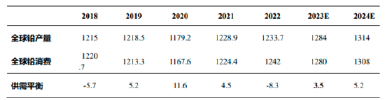 二、铅供需平衡来看,2023年从降库存周期转向增库存,表现过剩,而2024年全球过剩压力延续,甚至过剩程度有所提高,都可能抑制上行的空间。
