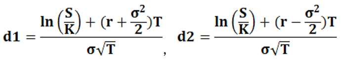 注:N(.)表示为标准正态分布函数,公式中的r、σ、T都是年化后的值。
