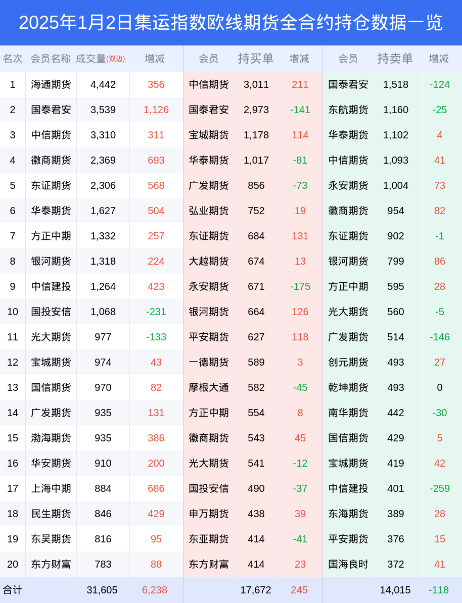 2日集运指数欧线期货下跌0.73%,最新持仓变化