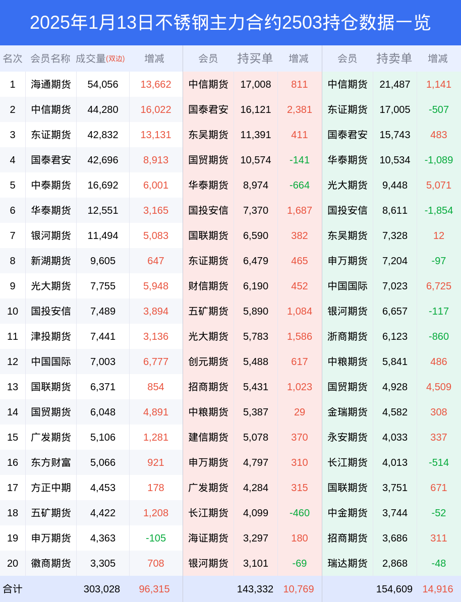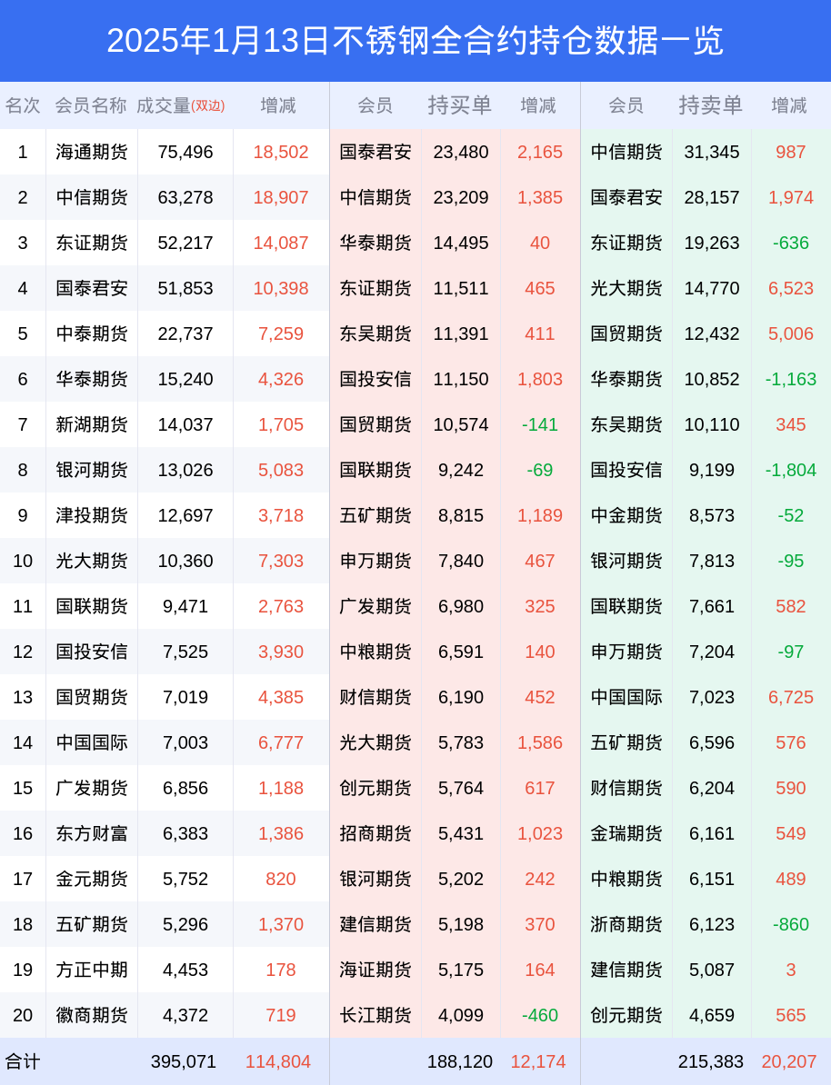 新浪期货 根据交易所数据,截至1月13日收盘主力合约不锈钢2503,涨跌+0.80%,成交量18.93万手,持仓数据显示前20席位呈现净空,差额头寸为11277手。