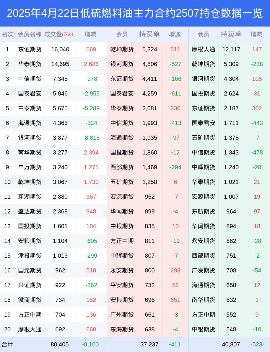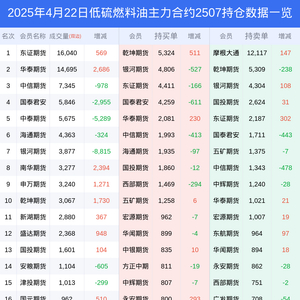 新浪期货 根据交易所数据,截至4月22日收盘主力合约低硫燃料油2507,涨跌+0.79%,成交量4.75万手,持仓数据显示前20席位呈现净空,差额头寸为3570手。