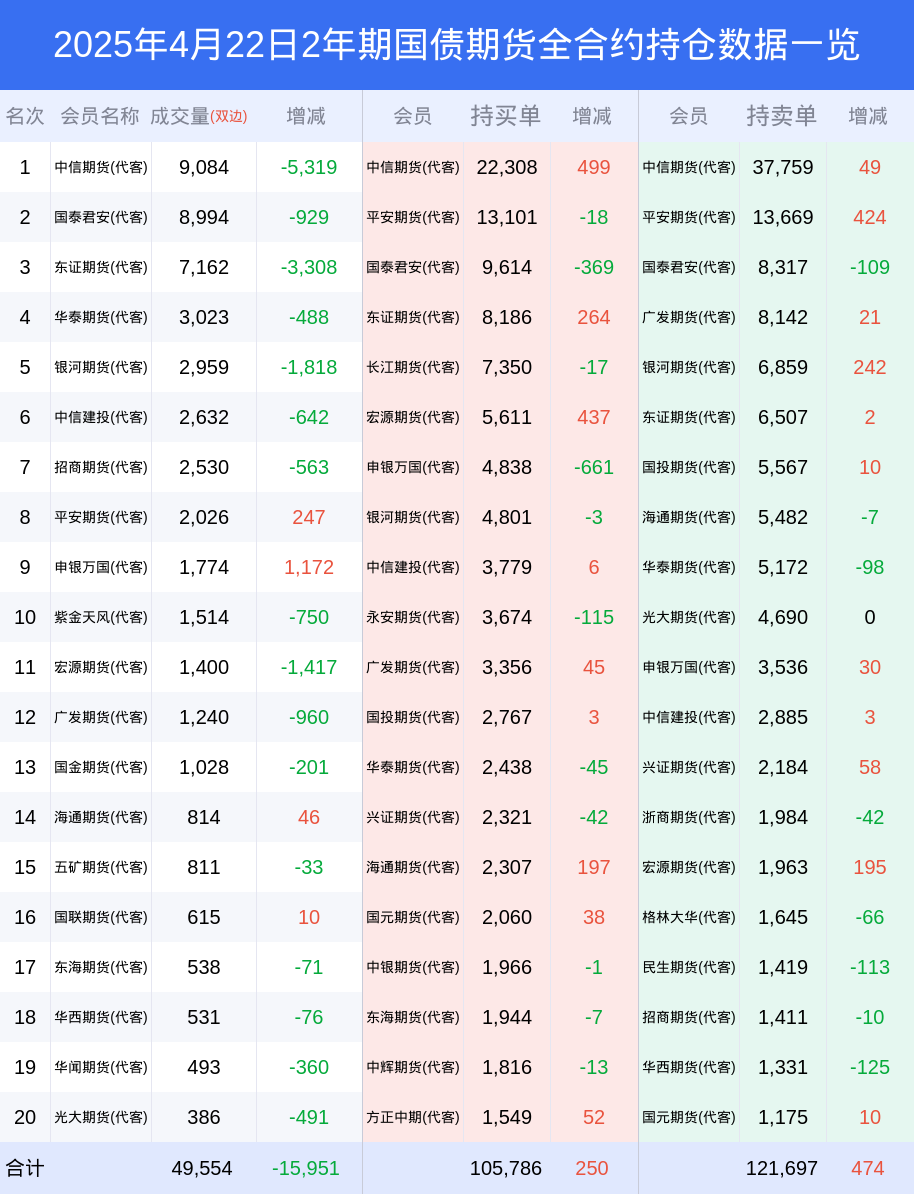22日2年期国债期货上涨0.01%,最新持仓变化