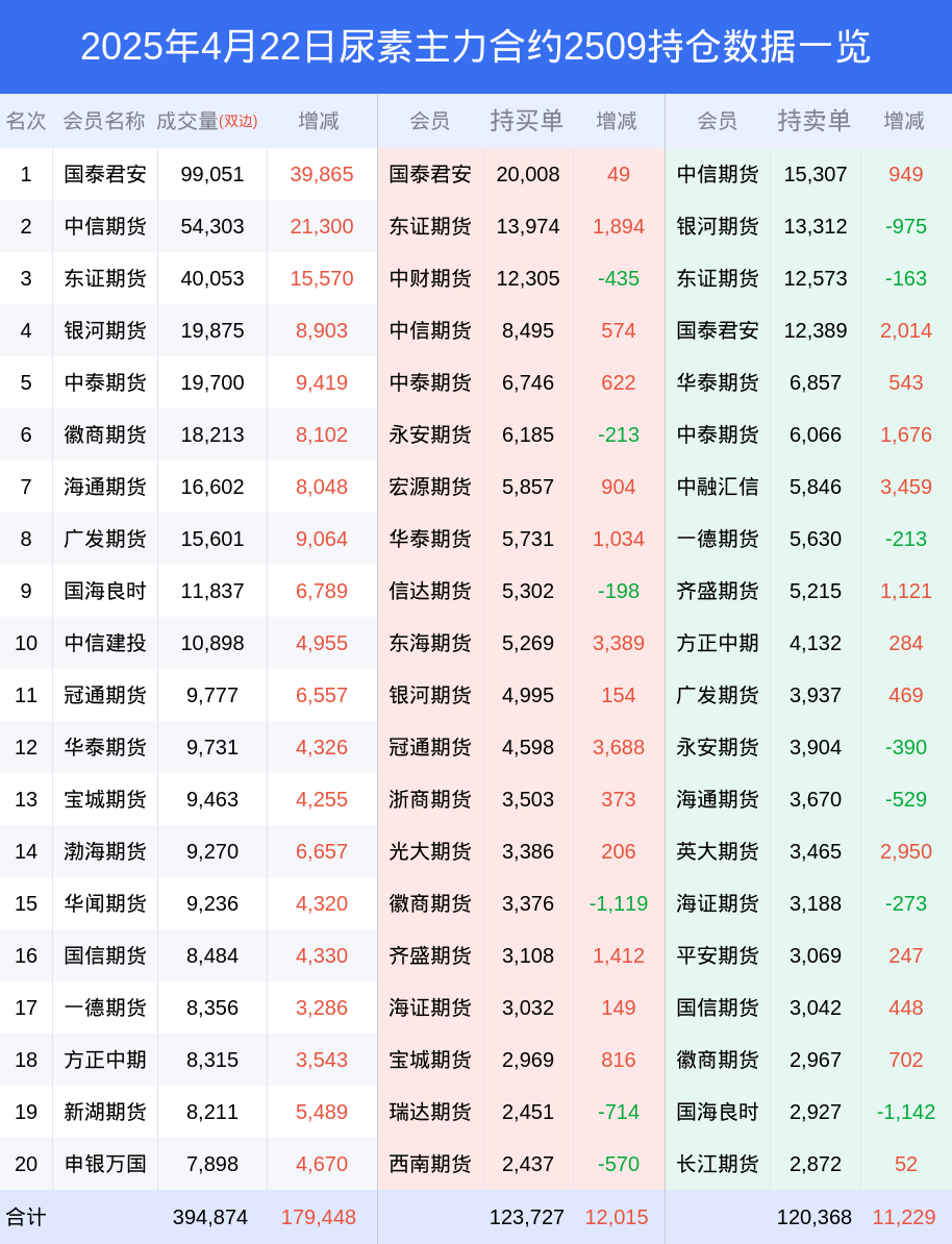 新浪期货 根据交易所数据,截至4月22日收盘主力合约尿素2509,涨跌+0.85%,成交量32.46万手,持仓数据显示前20席位呈现净多,差额头寸为3359手。