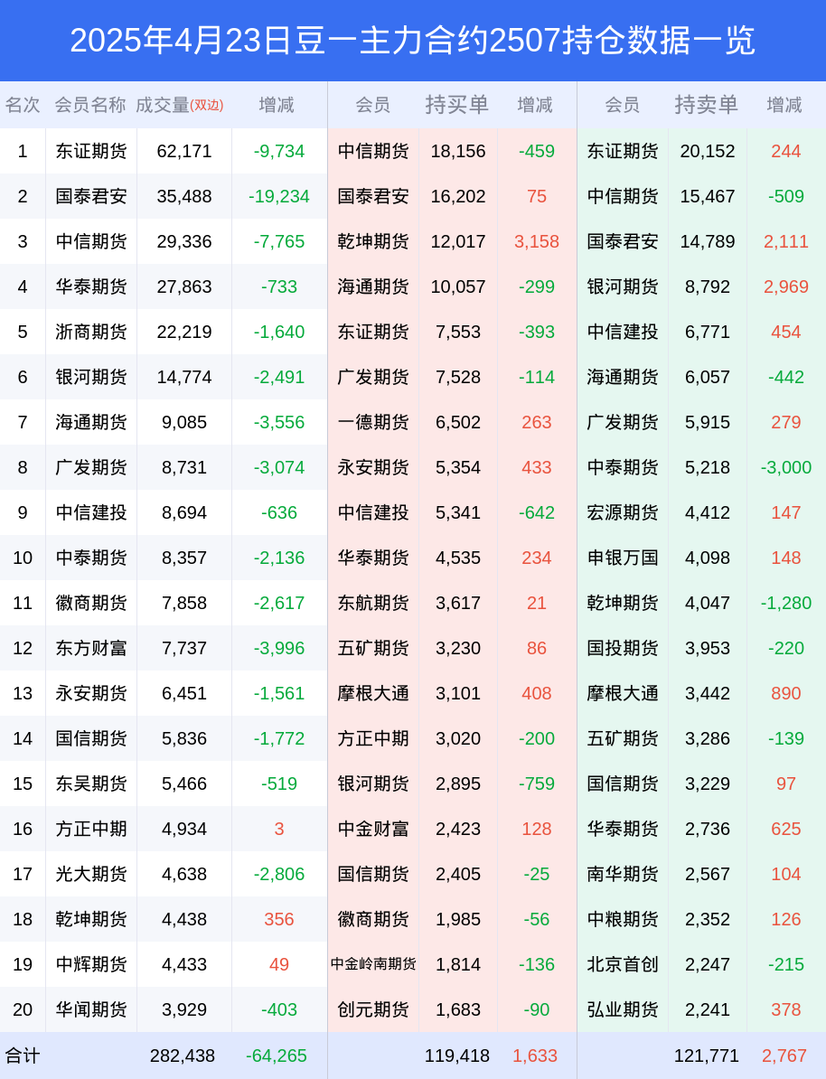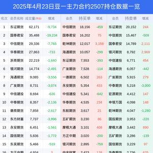 根据合并数据显示,多头前三席位为中信期货(代客),总持仓41177、国泰君安(代客),总持仓26926、乾坤期货(代客),总持仓22406;空头前三席位为一德期货(代客),总持仓38467、中信期货(代客),总持仓28663、东证期货(代客),总持仓25579;
