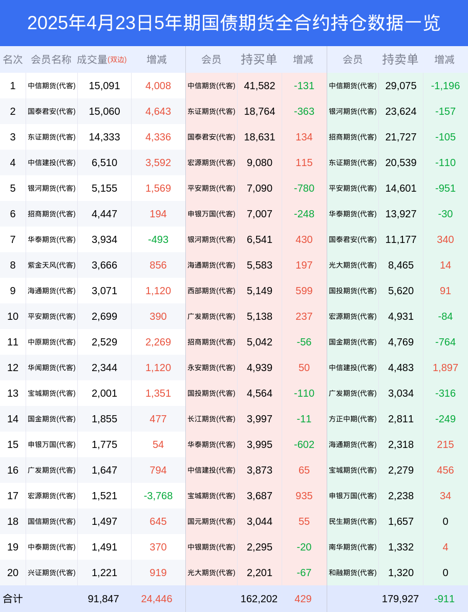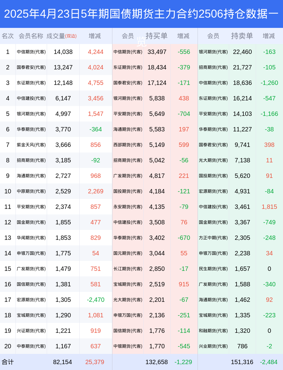 根据合并数据显示,多头前三席位为中信期货(代客),总持仓41582、东证期货(代客),总持仓18764、国泰君安(代客),总持仓18631;空头前三席位为中信期货(代客),总持仓29075、银河期货(代客),总持仓23624、招商期货(代客),总持仓21727;