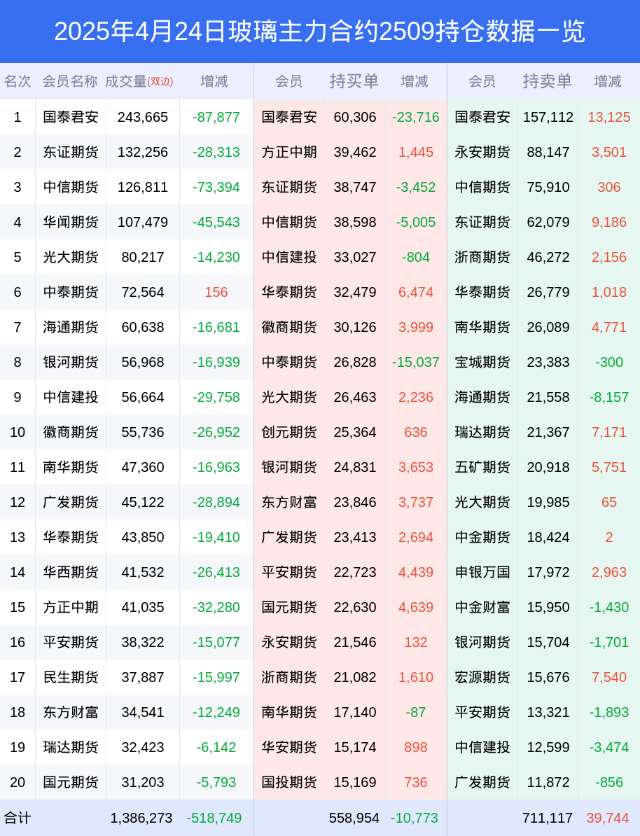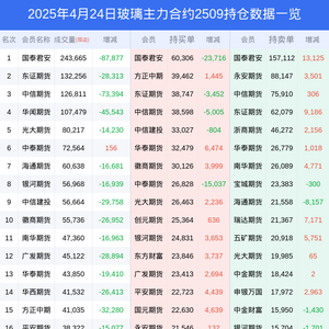 新浪期货 根据交易所数据,截至4月24日收盘主力合约玻璃2509,涨跌-0.96%,成交量113.21万手,持仓数据显示前20席位呈现净空,差额头寸为152163手。