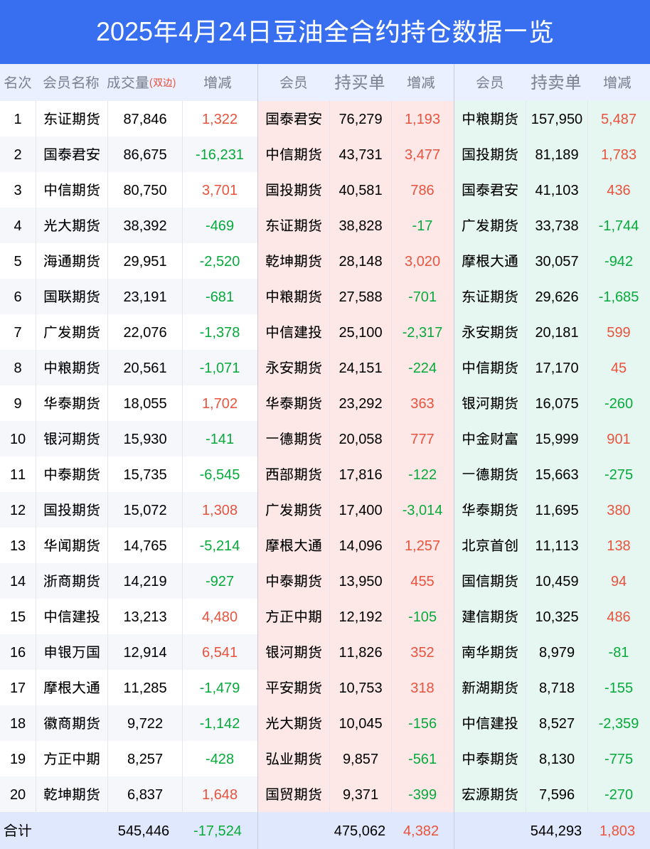 根据合并数据显示,多头前三席位为国泰君安(代客),总持仓76279、中信期货(代客),总持仓43731、国投期货(代客),总持仓40581;空头前三席位为中粮期货(代客),总持仓157950、国投期货(代客),总持仓81189、国泰君安(代客),总持仓41103;