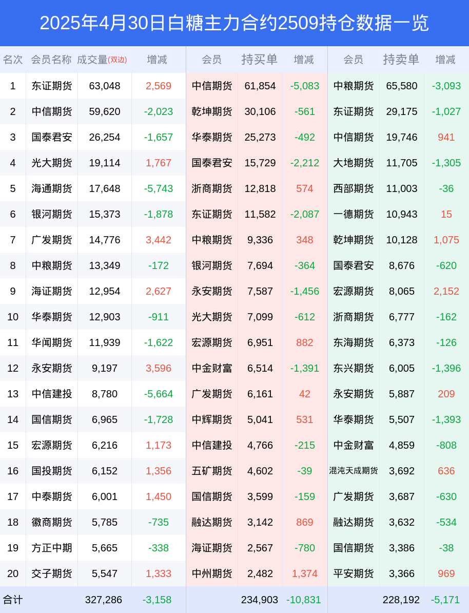 白糖期货全合约总计成交30.61万手,比上一日新增1745手。全合约前20席位多头持仓29.87万手,比上一日减少9962手。全合约前20席位空头持仓29.74万手,比上一日减少1.09万手。