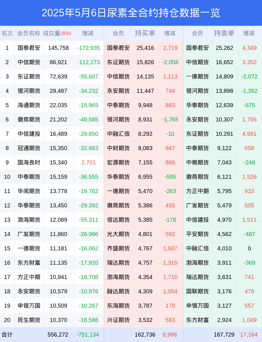 尿素期货全合约总计成交43.42万手,比上一日减少64.92万手。全合约前20席位多头持仓17.43万手,比上一日增加1.19万手。全合约前20席位空头持仓18.17万手,比上一日增加2.00万手。