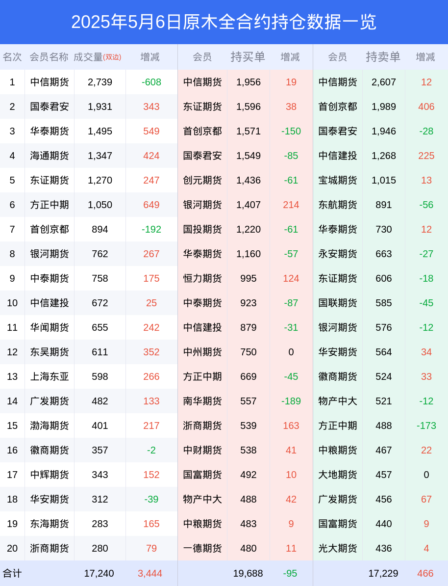 原木期货全合约总计成交1.31万手,比上一日新增1933手。全合约前20席位多头持仓1.97万手,比上一日减少95手。全合约前20席位空头持仓1.72万手,比上一日增加466手。