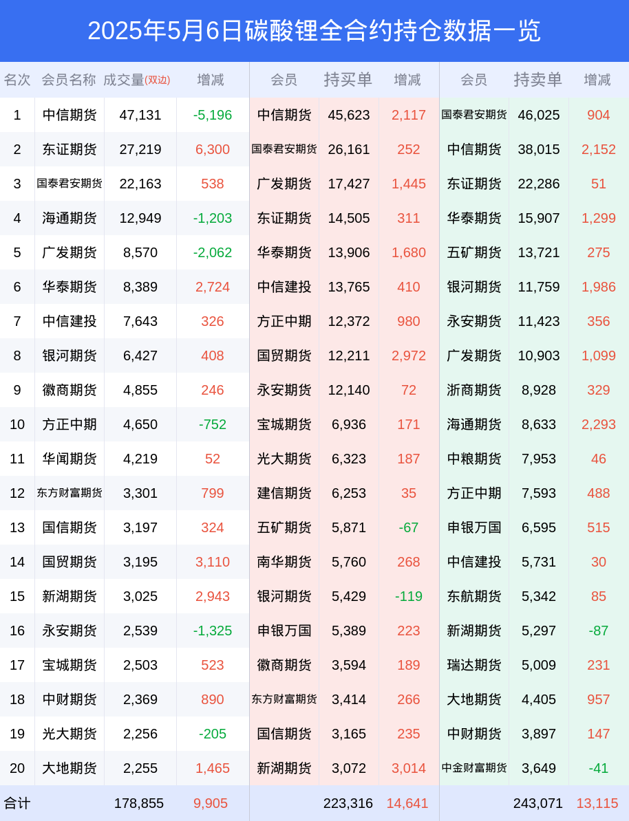 6日碳酸锂下跌1.51%,最新持仓变化