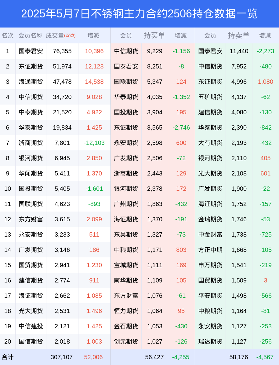 不锈钢期货全合约总计成交29.46万手,比上一日新增7.22万手。全合约前20席位多头持仓13.13万手,比上一日减少31手。全合约前20席位空头持仓14.31万手,比上一日增加3515手。