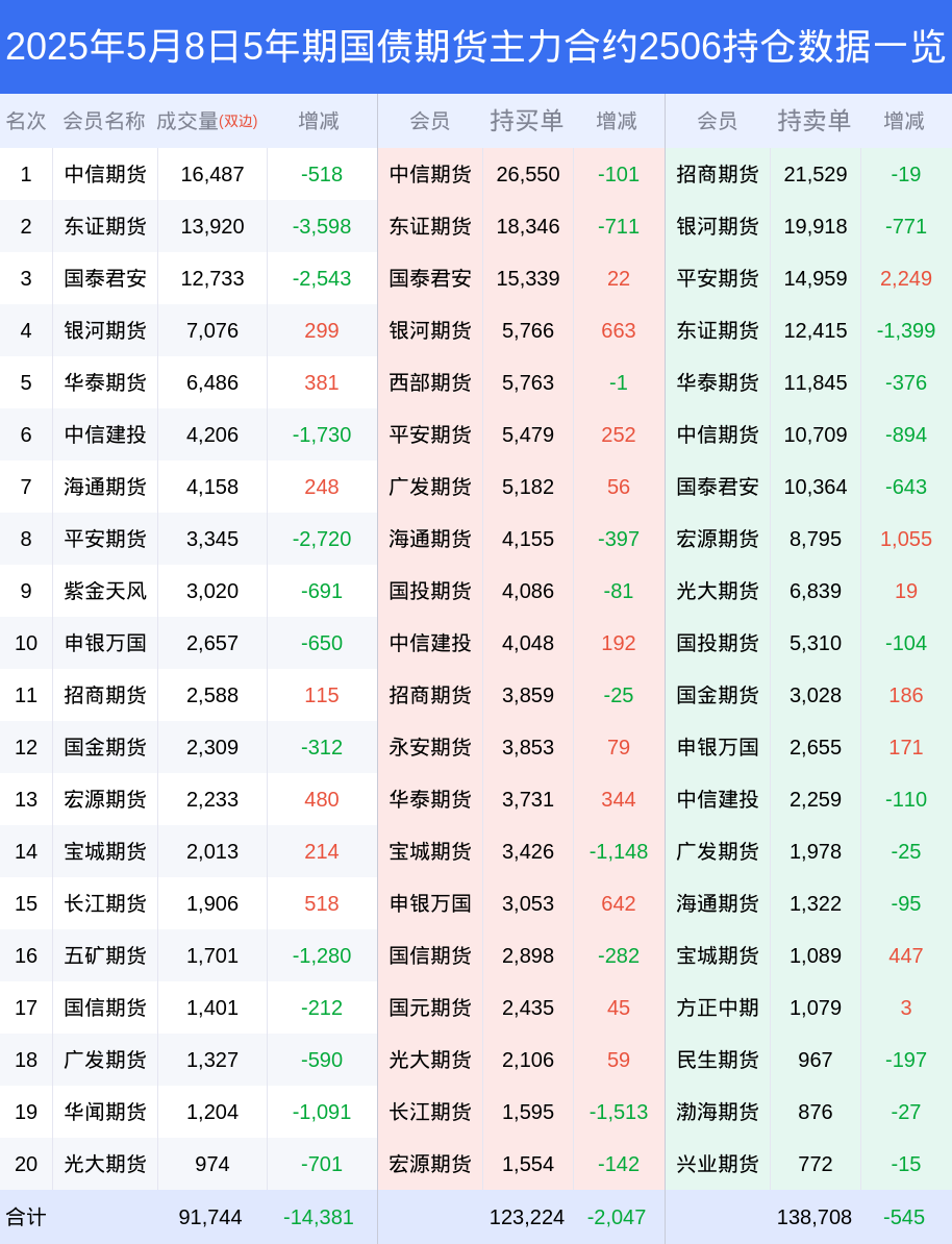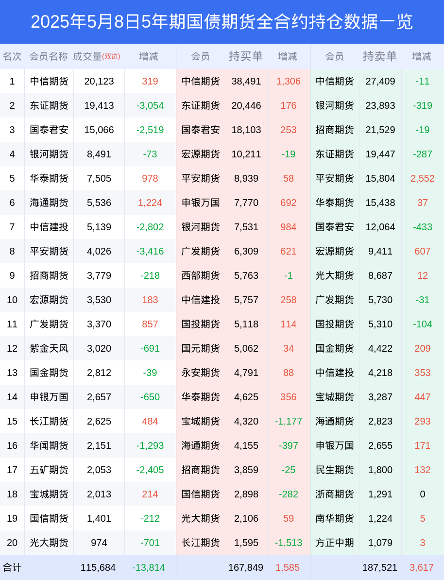 8日5年期国债期货上涨0.16%,最新持仓变化