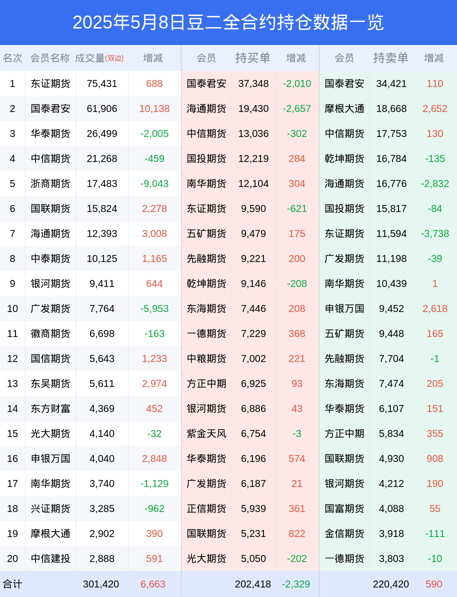 豆二期货全合约总计成交20.18万手,比上一日新增2429手。全合约前20席位多头持仓24.25万手,比上一日减少435手。全合约前20席位空头持仓25.52万手,比上一日增加734手。