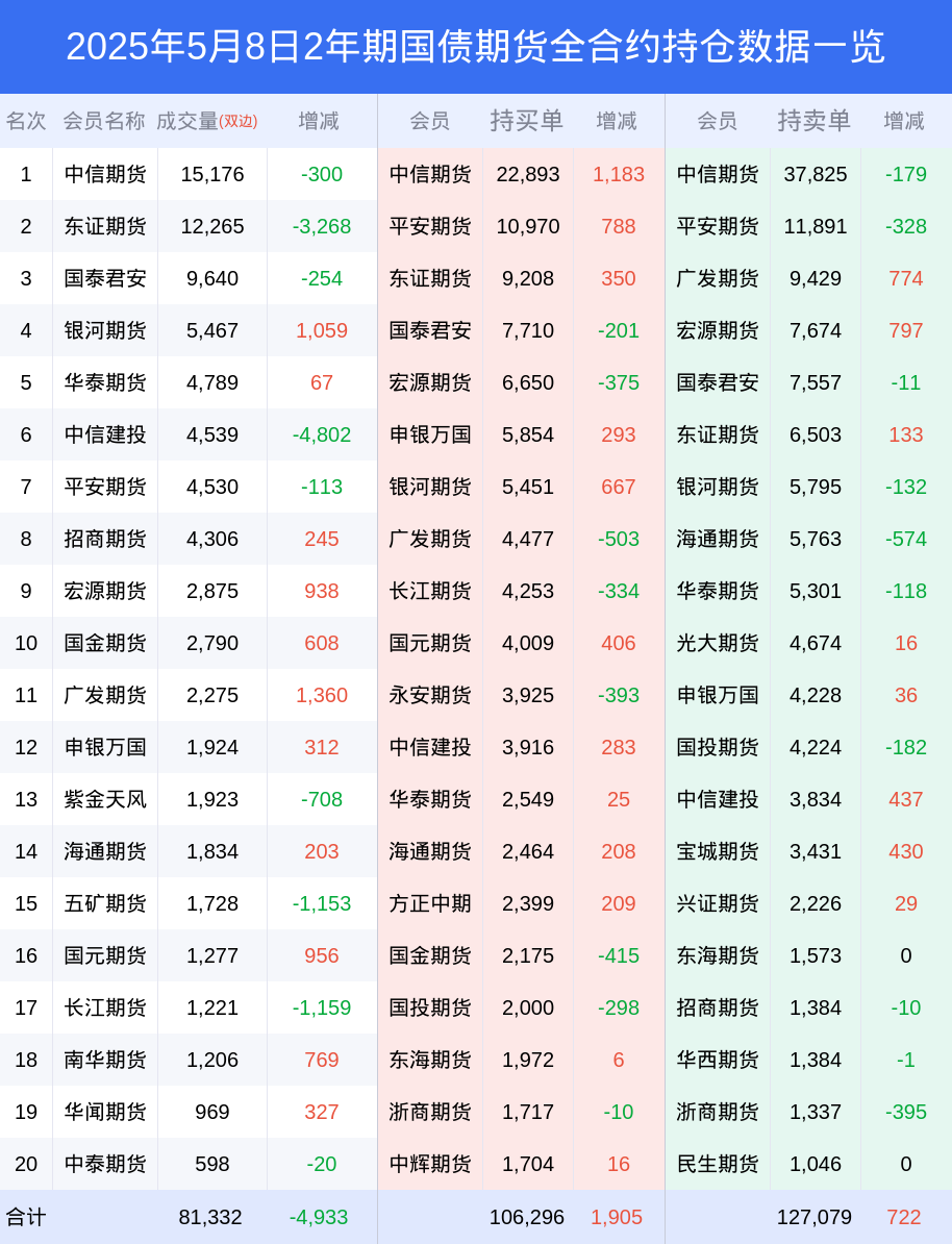 8日2年期国债期货上涨0.05%,最新持仓变化