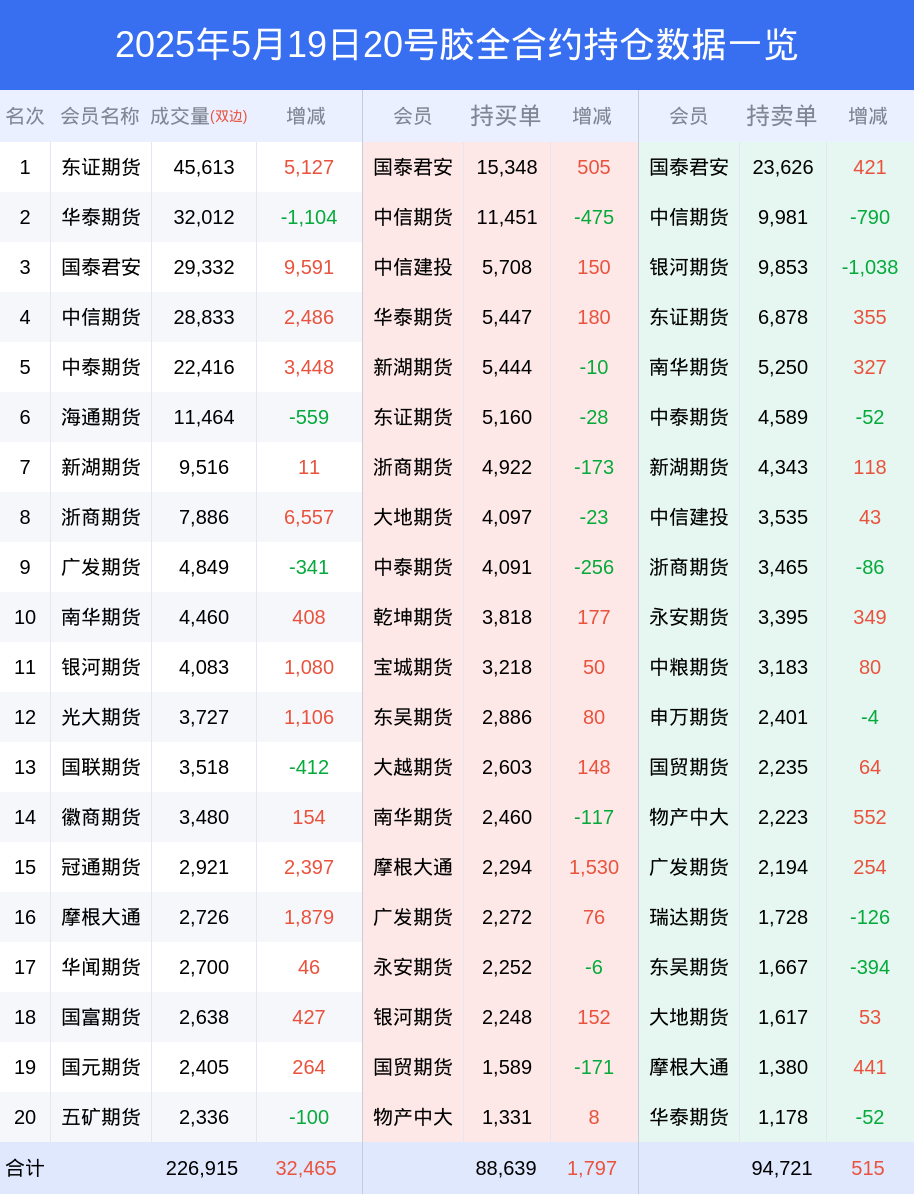 19日20号胶上涨0.16%,最新持仓变化