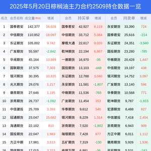 20日棕榈油上涨1.25%,最新持仓变化