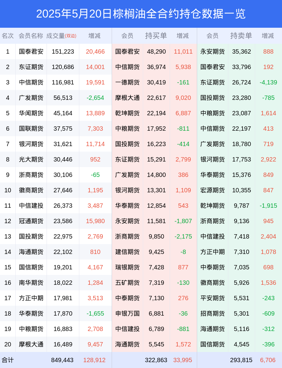 棕榈油期货全合约总计成交67.82万手,比上一日新增10.77万手。全合约前20席位多头持仓33.84万手,比上一日增加3.35万手。全合约前20席位空头持仓31.10万手,比上一日增加7098手。