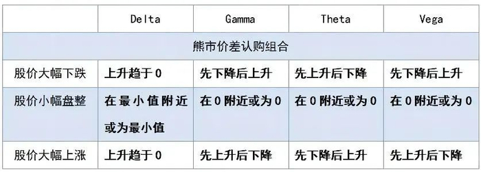 表3 熊市价差认购组合希腊字母表现