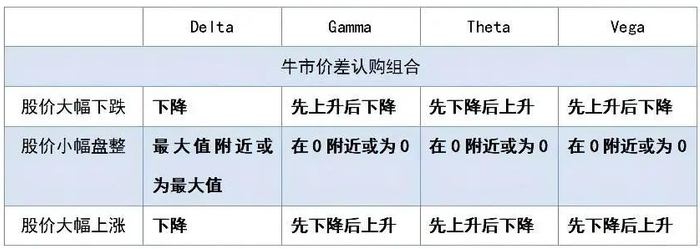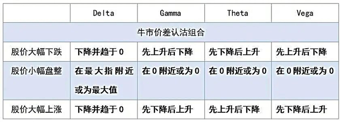 表1 牛市价差认购组合希腊字母表现