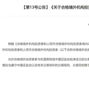 中山大学岭南学院教授韩乾认为,上述中国证监会发布的关于合格境外投资者的政策,标志着我国期货和衍生品市场对外开放迈入工具多元化、风险管控精细化的新阶段,是一次制度型开放的进阶。