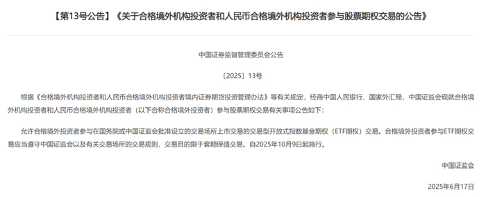10月9日起!证监会公告允许合格境外投资者参与ETF期权交易