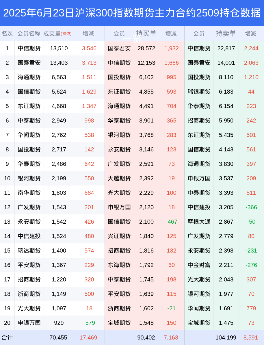 23日沪深300指数期货上涨0.68%,最新持仓变化