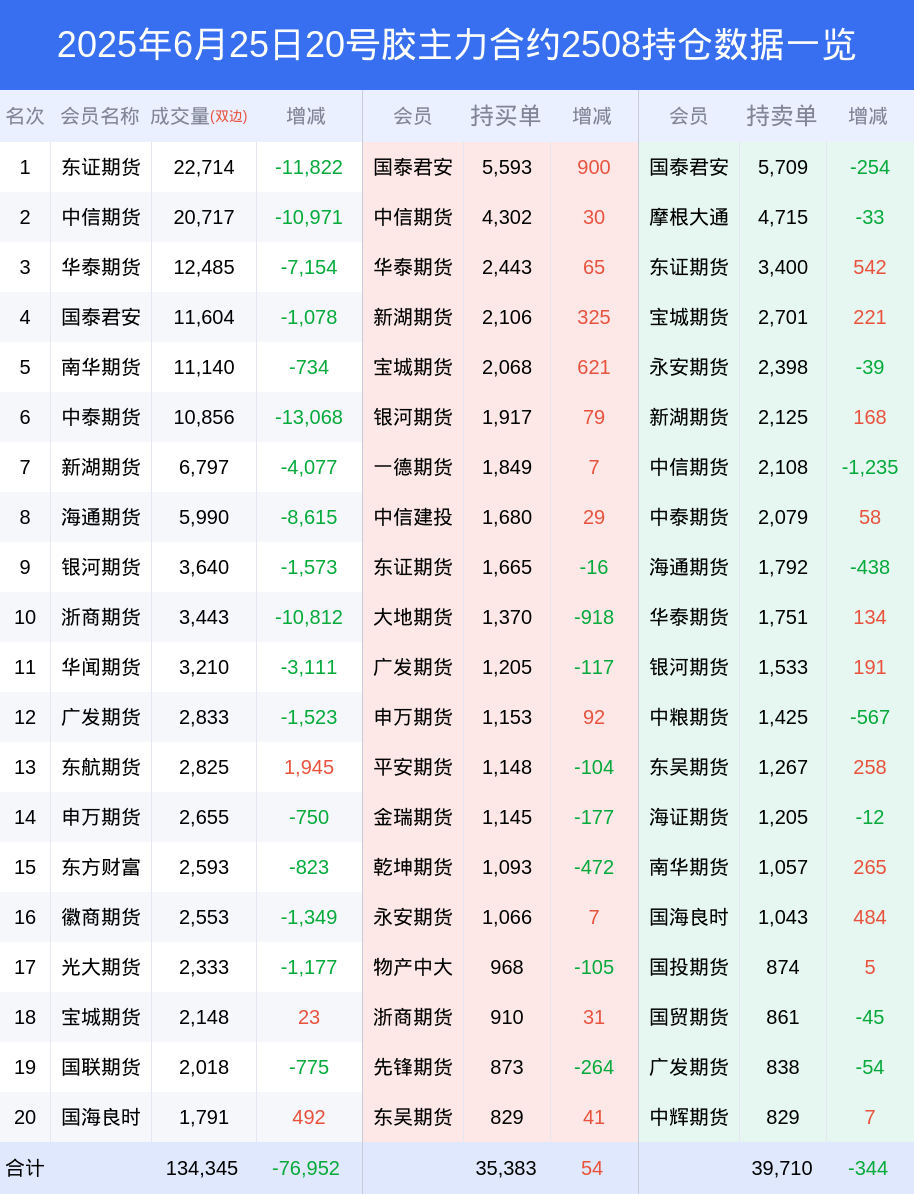 新浪期货 根据交易所数据,截至6月25日收盘主力合约20号胶2508,涨跌-0.67%,成交量9.05万手,持仓数据显示前20席位呈现净空,差额头寸为4327手。