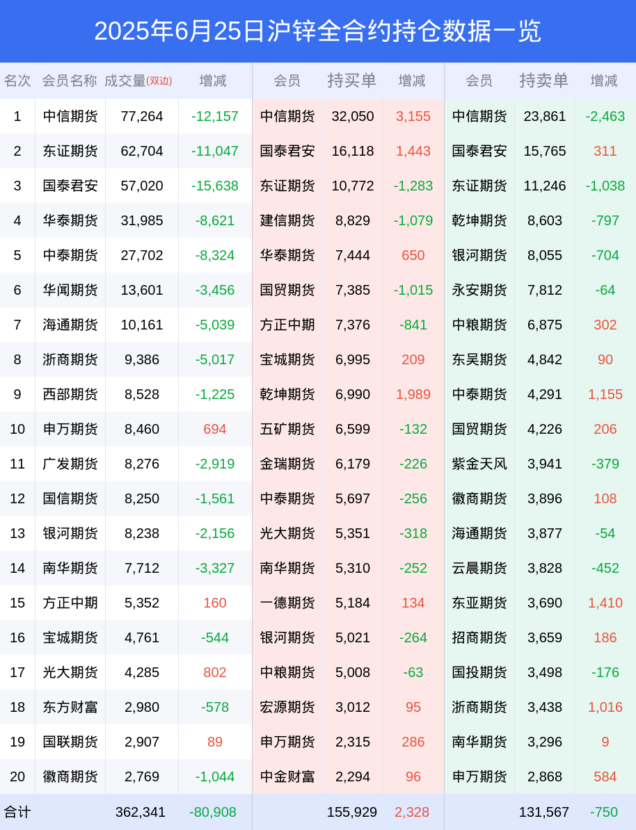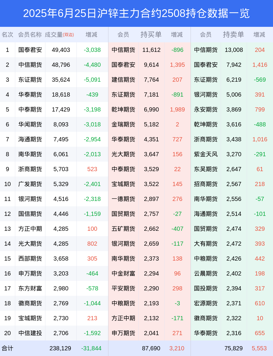 沪锌期货全合约总计成交25.33万手,比上一日减少6.38万手。全合约前20席位多头持仓17.41万手,比上一日增加2876手。全合约前20席位空头持仓16.09万手,比上一日增加2153手。
