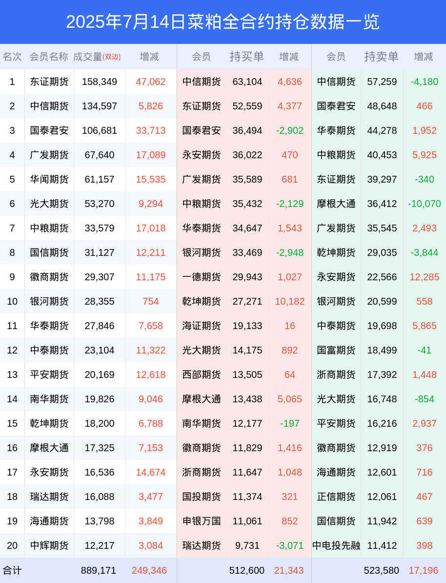 菜粕期货全合约总计成交69.63万手,比上一日新增20.84万手。全合约前20席位多头持仓59.74万手,比上一日增加3.02万手。全合约前20席位空头持仓60.79万手,比上一日增加1.90万手。