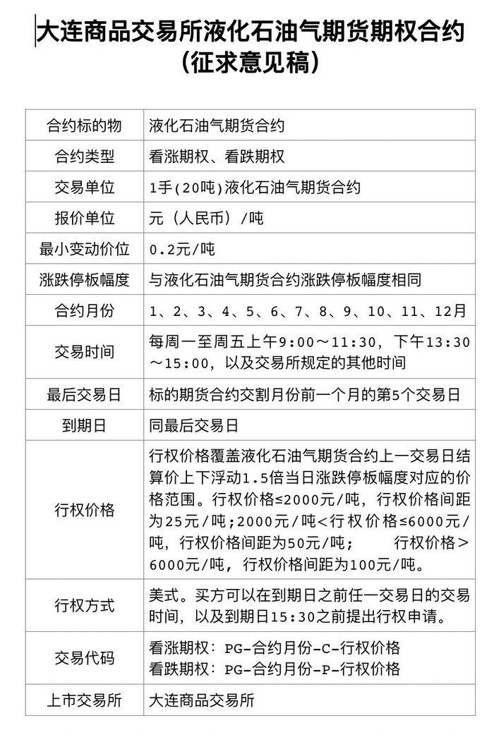 液化石油气期货期权合约(征求意见稿)