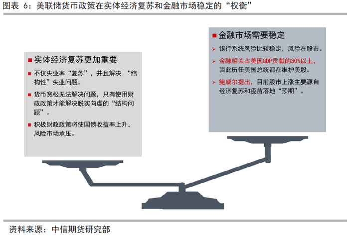 上月美联储主席鲍威尔针对美股上涨是否是货币宽松时也声称,目前美股上涨主要源自经济复苏和疫苗落地“预期”。可见,维护美国股市健康和正向运转符合美国经济的利益(图表6)。