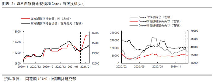 (1)SLV白银ETF持仓量明显上升。数据显示,SLV白银持仓量从1月初的17378.01吨上涨到2月2日的21067.85吨,涨3689.84吨,且在上周突然上升1070.56吨,说明确实有大批散户入现货市场购买。