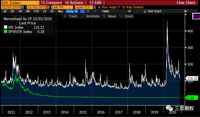 此外,长期持有VXX还会有一个每年0.89%有管理费。因此千万不要做个以年甚至月为单位长期多VXX或者VIX期货。