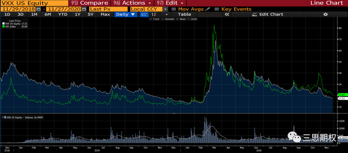 如前面介绍的,VIX是指数,是通过标普500的期权来计算未来30天的隐含波动率,这个指数本身不可以交易。