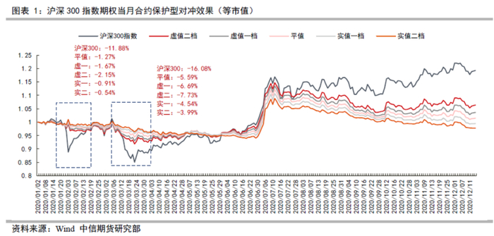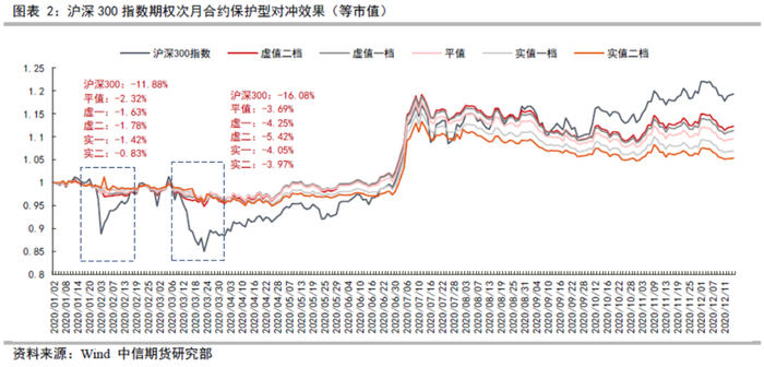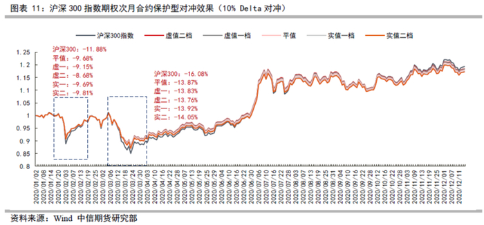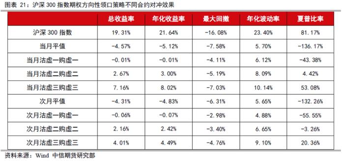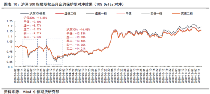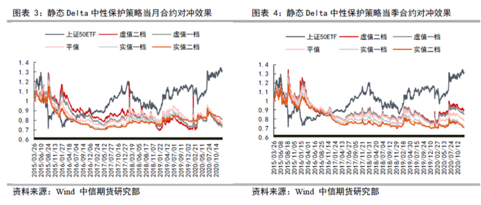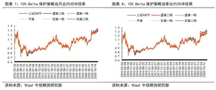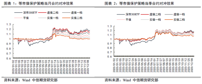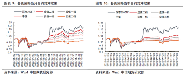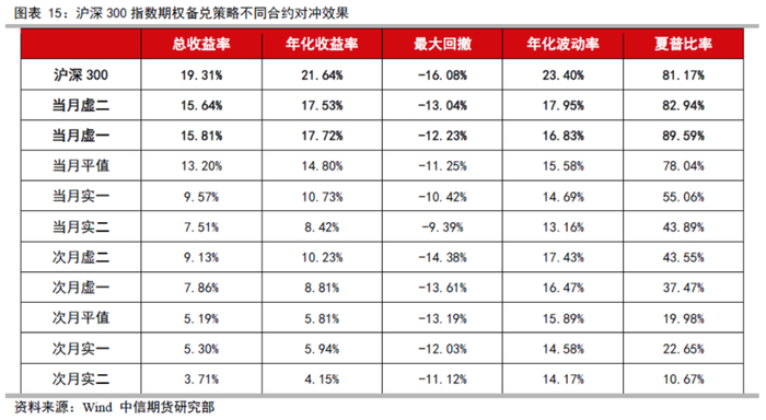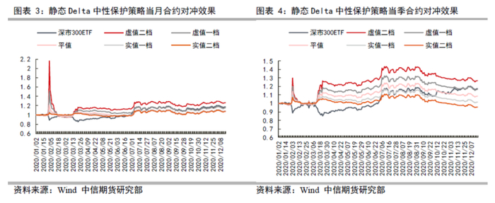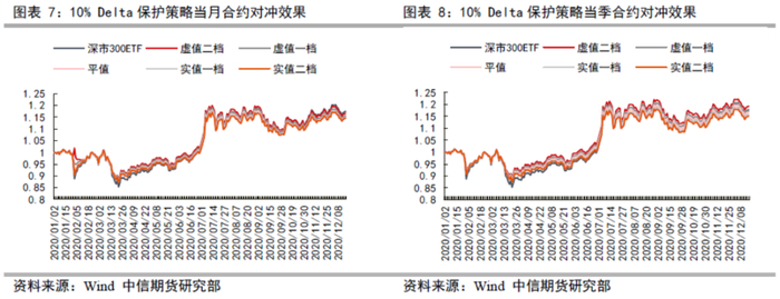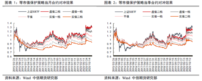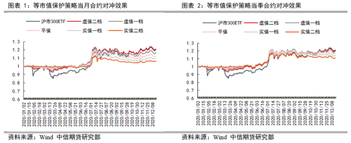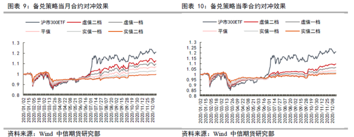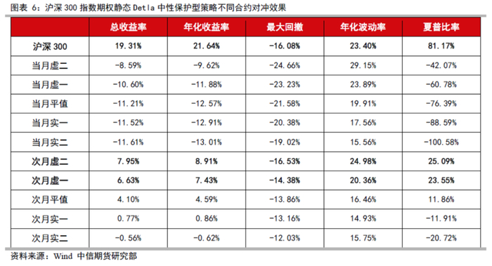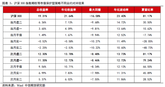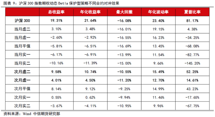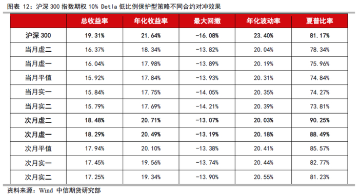 综合来看,在满足对冲容量的前提下,等市值保护型策略中,次月虚值合约更适合长期持有,而实值合约更适合短期风险对冲。