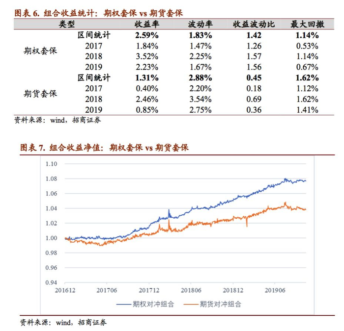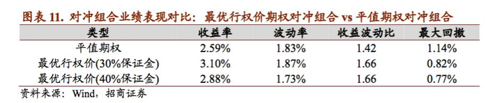 3、相对于期货,场内期权是更为理想的现货套期保值工具,尤其是通过动态筛选最优行权价的期权套期保值方案,可以在当前水平上额外给对冲套利组合提供年化1.5%的收益,但由于期权价格的非线性特征,投资者需要精细化期权组合的保证金管理。