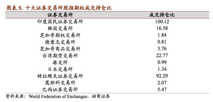 从全球市场的发展显著来看,亚洲是股指期权最大的交易市场,但从成交持仓比反映出印度、韩国及台湾等市场期权交易存在较重的投机氛围;