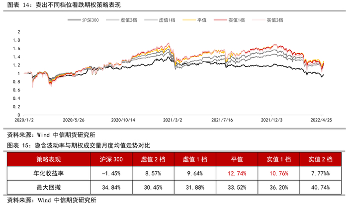 卖出不同档位看跌期权策略回测效果接近:在上涨周期中卖出实值看跌期权可以收获更高权利金,而在下跌周期中卖出虚值看跌期权会提高策略不被行权的概率。